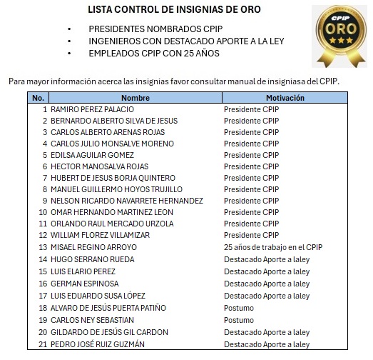 LISTA CONTROL DE INSIGNIAS DE ORO Consulta aqui el procedimiento para el otorgamiento de Insignias: Ver mas LISTA CONTROL INSIGNIAS DE PLATA Download File PDF Loading... LISTA CONTROL DE INSIGNIAS DE BRONCE